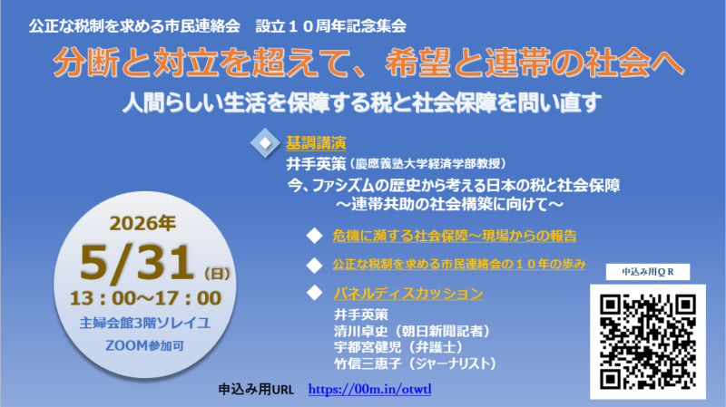 公正な税制を求める市民連絡会・設立5周年On-line集会